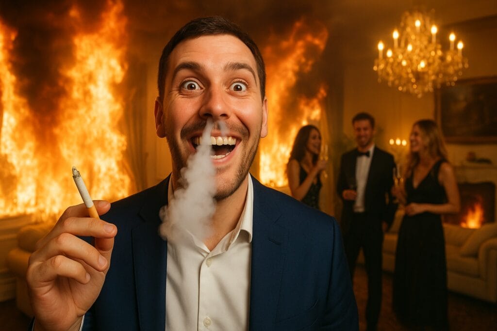 „Skonio gurmanas“kai pasaulis dega, o tu vis tiek mėgaujiesi tobulu cigaretės aromatu. Kiekvienas įkvėpimas – tarsi someljė vertinamas dūmo buketas: pelenų natos, lengvas plastiko prieskonis ir subtilus degančių užuolaidų kvapas. Foninis vakarėlis tik papildo patirtį – kai turi cigaretę, net gaisras tampa dekoracija tavo pasimėgavimui.